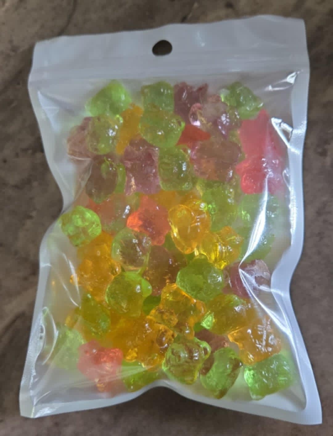 Made with Maltitol Liquid, Water, Isomalt Liquid is a sugar substitute from beet sugar, Xylitol is for is a sugar substitute, Gelatin, Glycerin, Citric Acid, Malic Acid, Potassium, Lactic Acid, Artificial Flavors, Glyceryl Caprylate, Carnauba Wax is used for a glossy look, Artificial Colors (FD&C Red 40, Yellow 5, Blue 1), Titanium Dioxide.