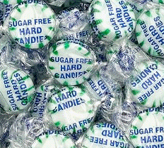 The mints contain artificial sweeteners. The ingredients list includes *xylitol, maltitol syrup, and sucralose.